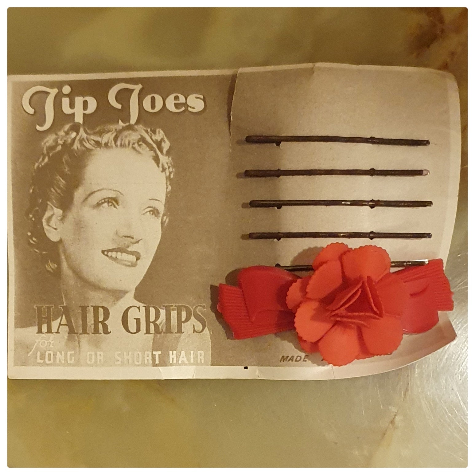 1950s RED FLOWER PLASTIC HAIR BARRETTE AND GRIPS