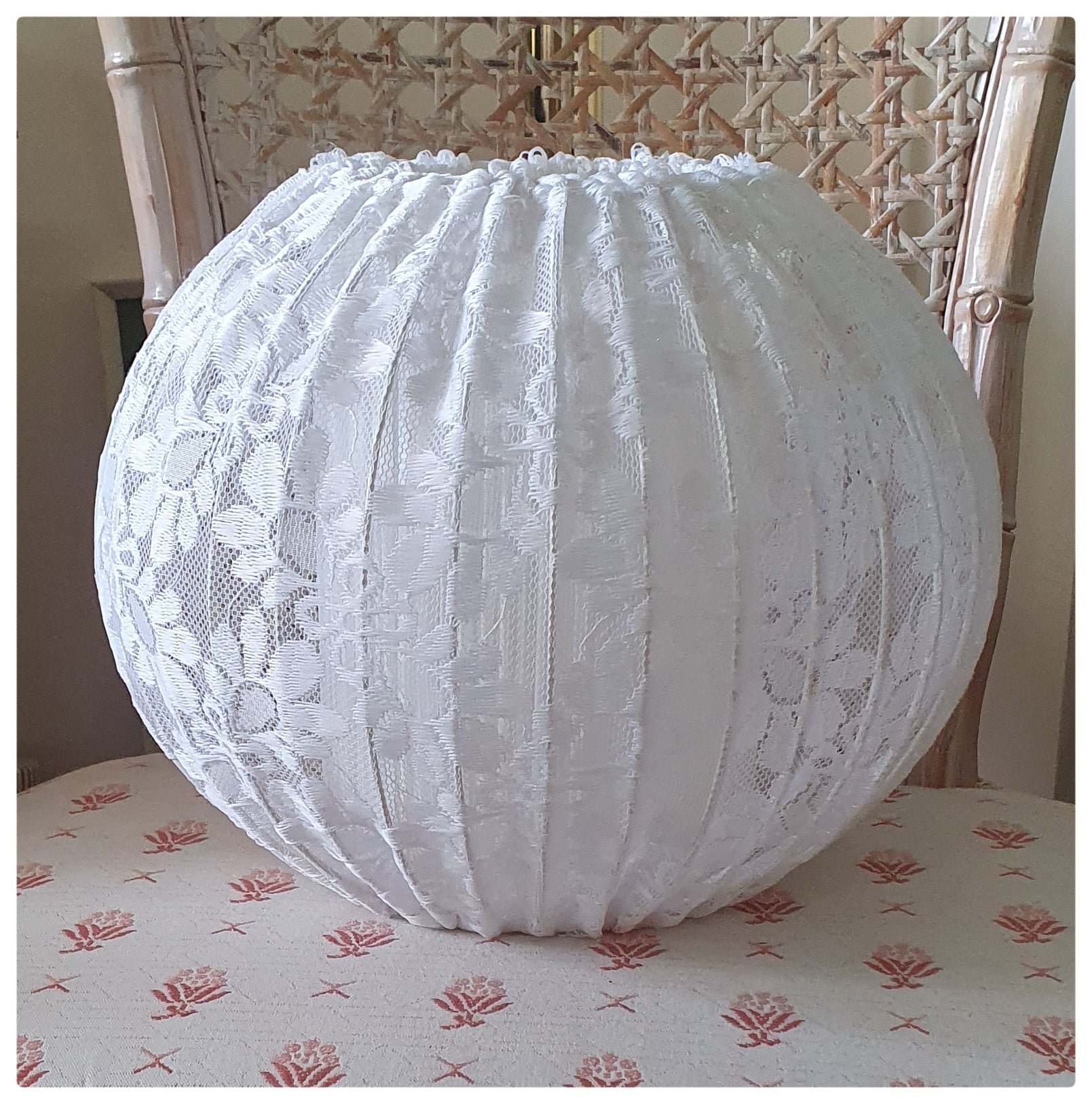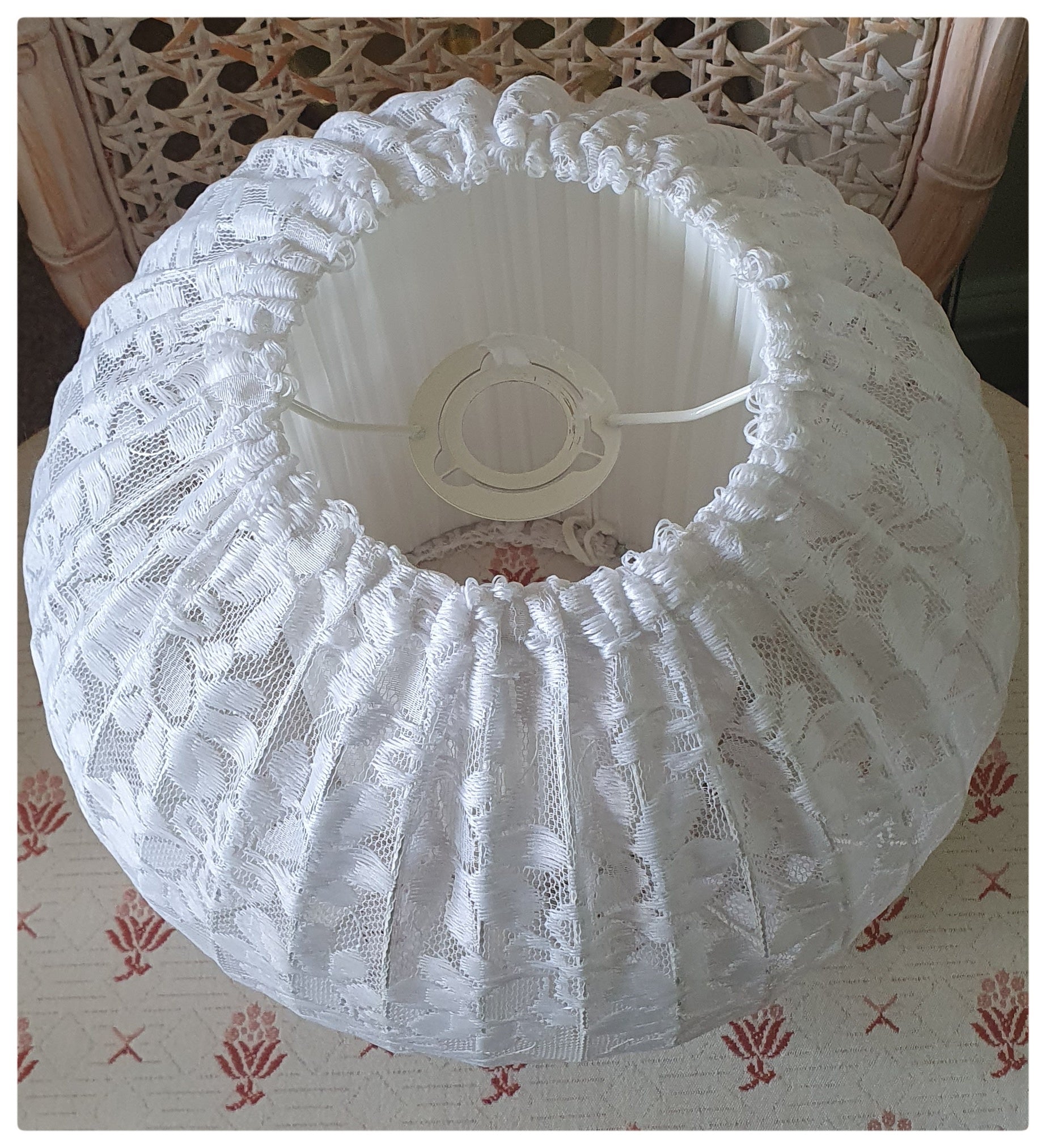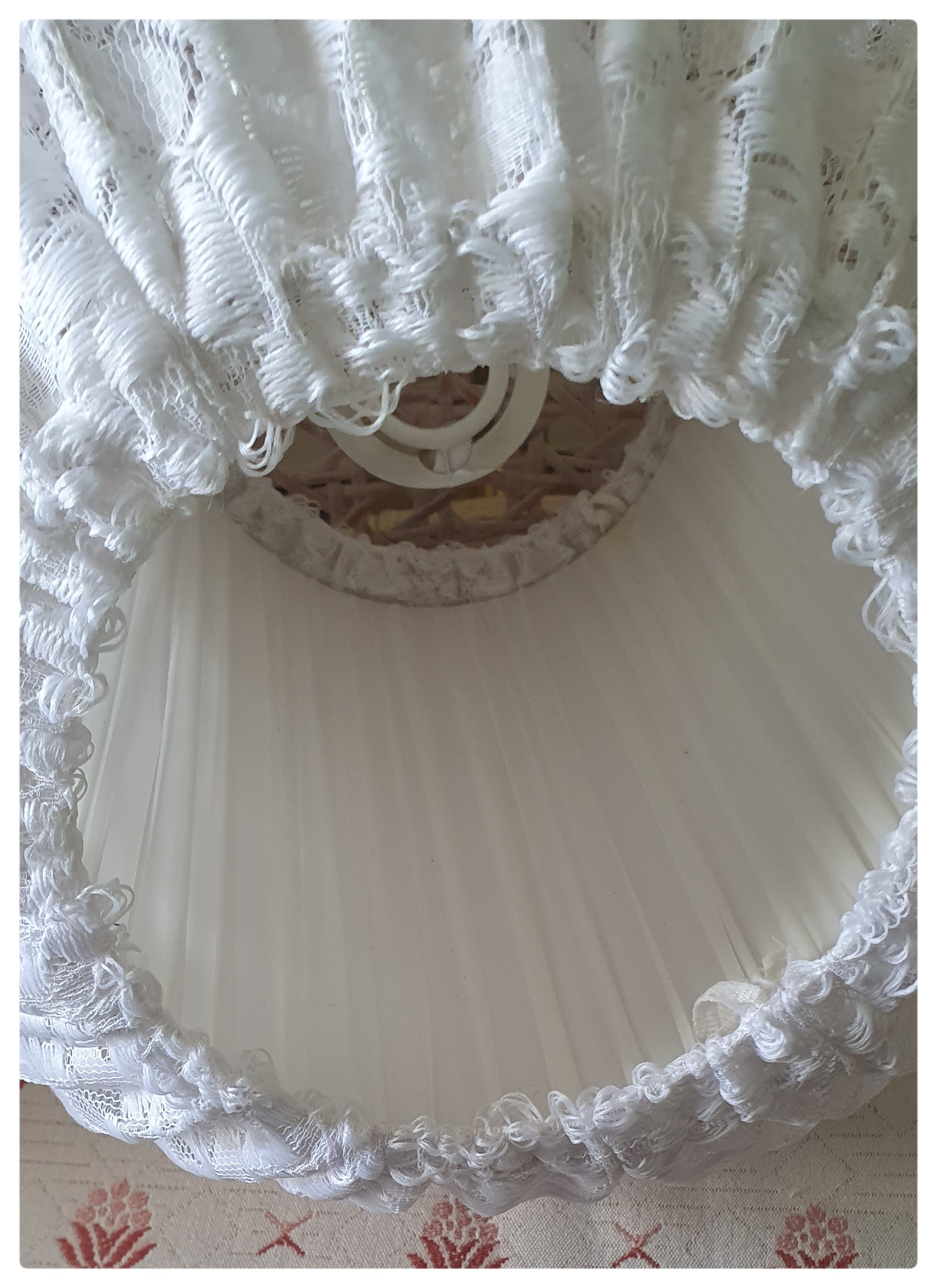 1970s 1980s WHITE LACE ROUND LIGHT SHADE