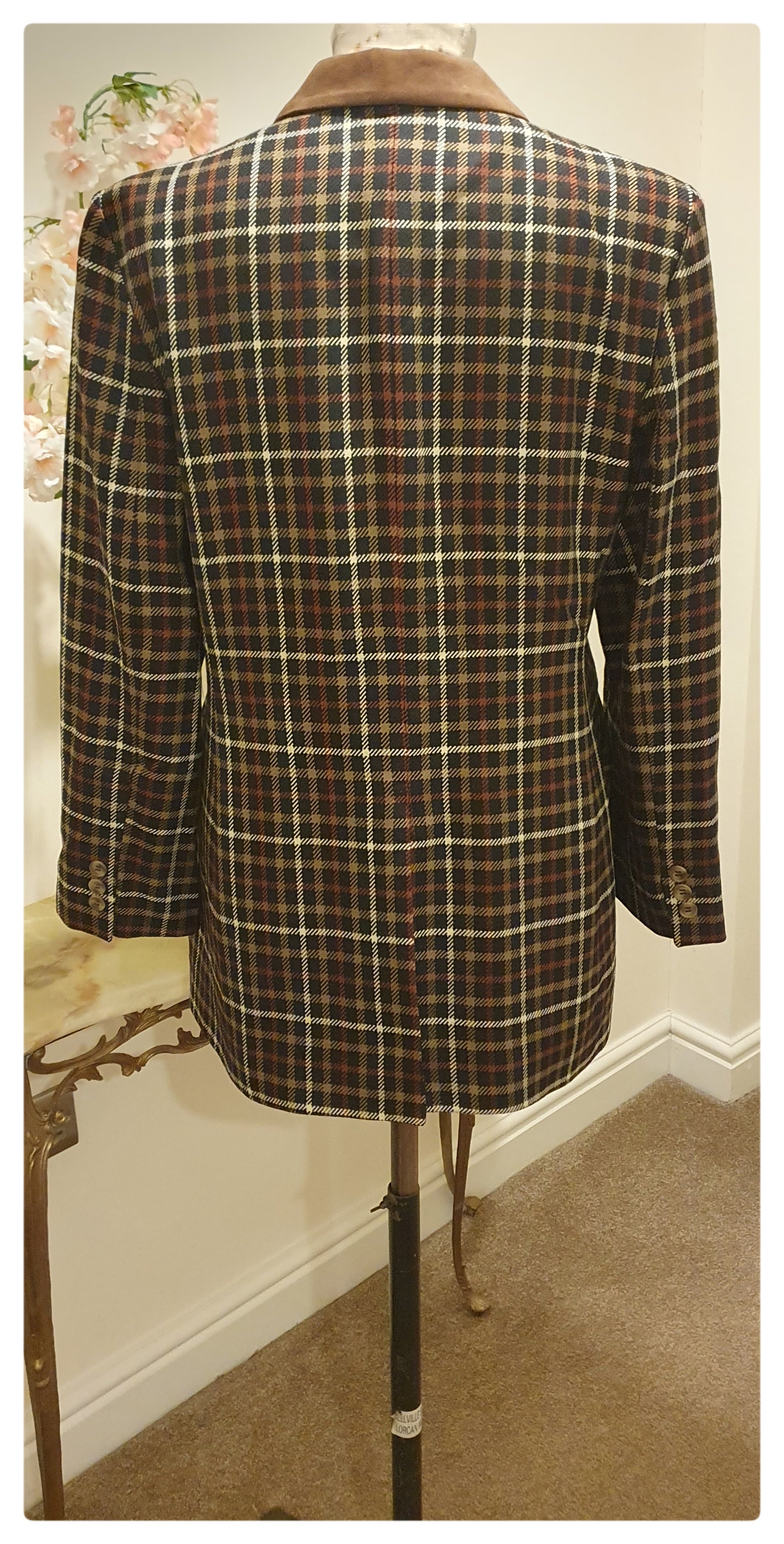 1980s DAKS CHECKED TWEED JACKET WITH SUEDE COLLAR UK 12