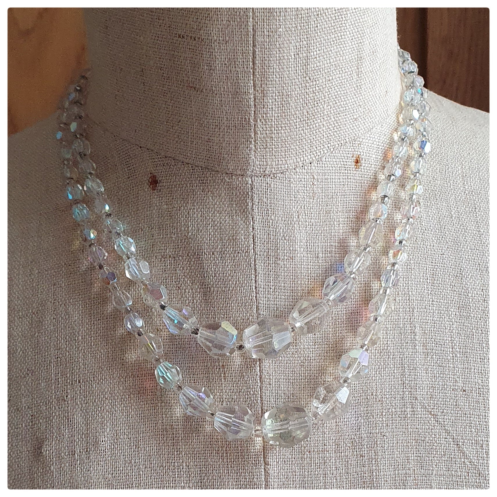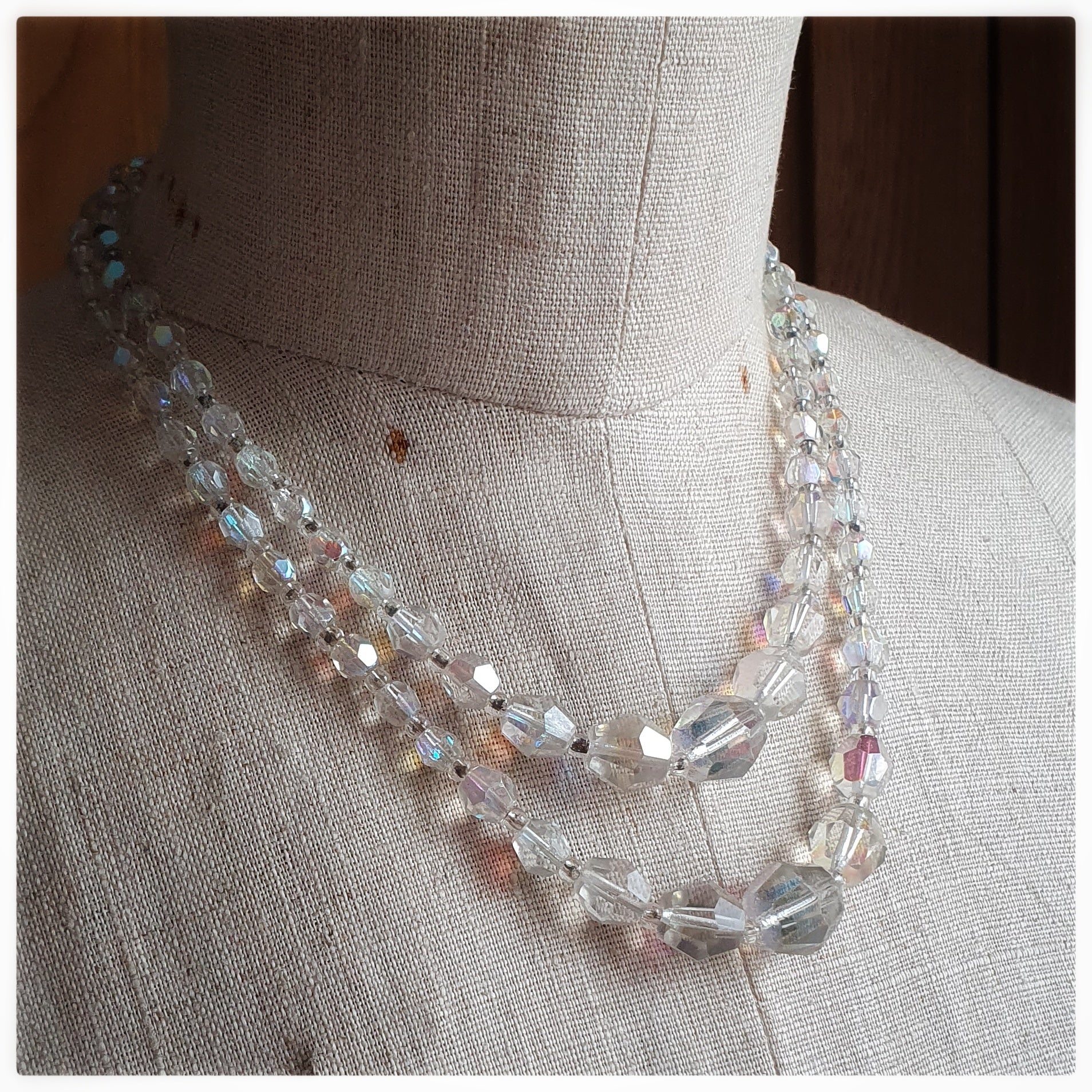 1950s AURORA BOREALIS DOUBLE STRAND CRYSTAL NECKLACE