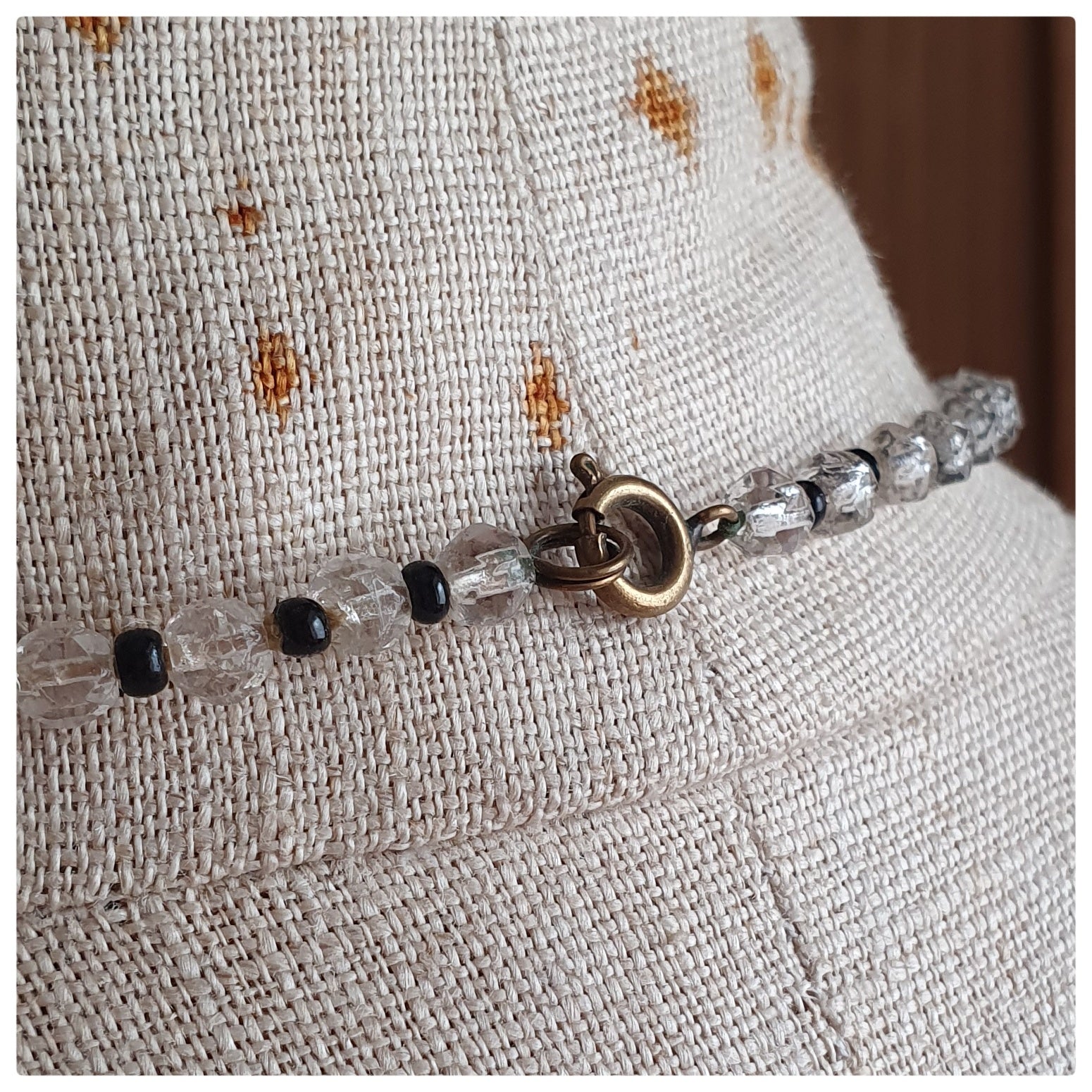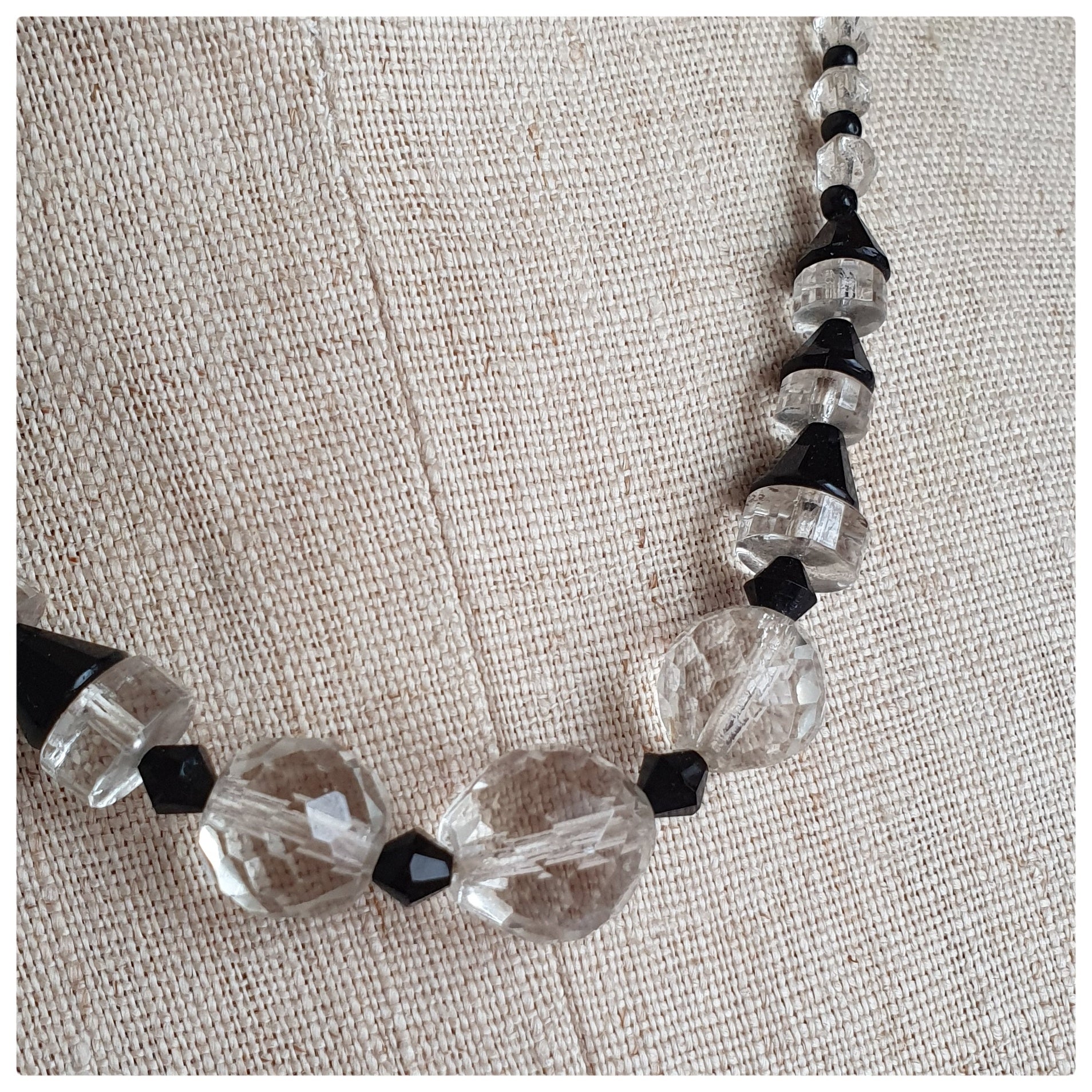 1930s ART DECO BLACK AND CLEAR BEAD NECKLACE