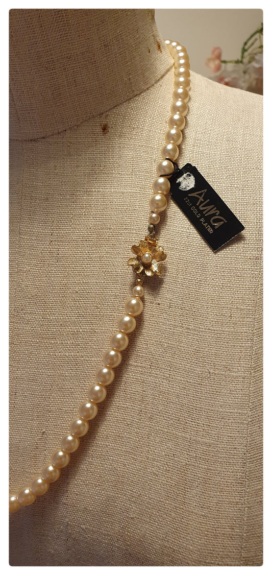 1980s 22ct. GLASS FAUX PEARL NECKLACE UNWORN
