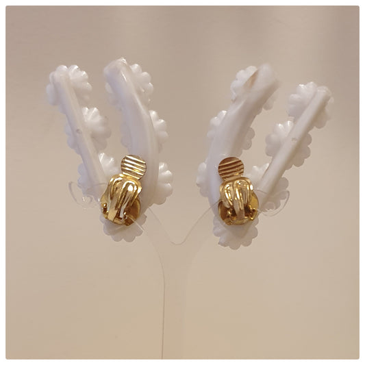 1950s WHITE LUCITE AND DIAMONTE CLIP ON EARRINGS